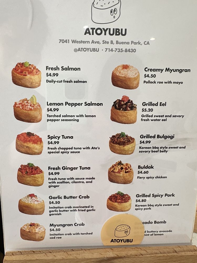 Welcome to Atoyubu, a delightful fusion of Korean and Japanese fast food located in Buena Park, CA. This vibrant eatery stands out not just for its culinary offerings but for its accessibility and convenience. Guests can easily enjoy a meal via delivery or takeout, and those dining in will appreciate the wheelchair-accessible features and outdoor seating options.